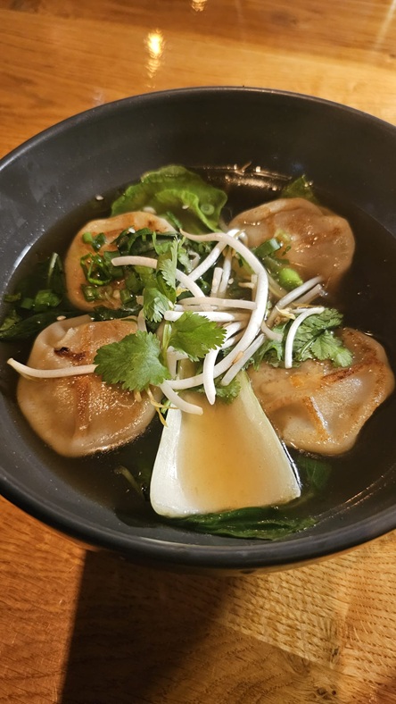 מרק סופ דאמפלינג – מרק ובו 4 כיסונים עסיסיים, ממולאים בבקר טחון וציר מרק עשיר, בזיל תאילנדי, באק צ'וי, נבטים, כוסברה, בצל ירוק וצ'ילי.