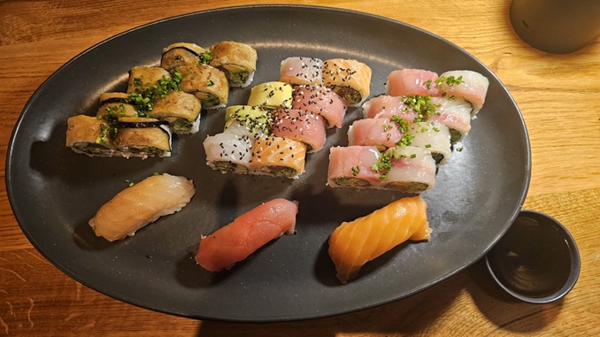 וואווווווו… איזה יופי. תשמעו, יש כאן סושי מפתיע בציפוי חציל קלוי, לא ראינו כזה. מקוריות לשמה. טעים טרי פשוט נפלא 🙂