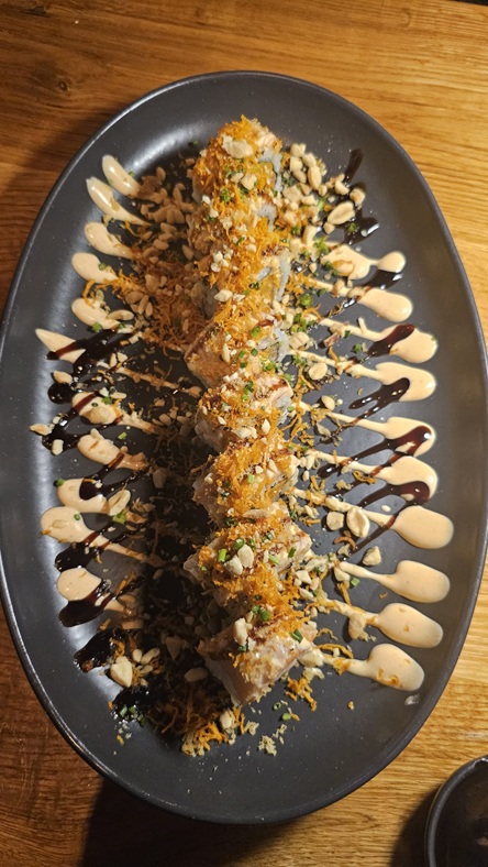 מעיון בתפריט ראינו שיש מנות ראשונות של סלטים, כיסונים, לחמניות באן, פאני פורי, קימצ'י, נאמס, גיוזה, אגרול ועוד… מגוון של מרקים, נודלס, סושי, סושי בהרכבה אישית, מגשי אירוח מפוארים ועוד… בקיצור, יש רצון לאכול את כל התפריט 🙂 טעים.