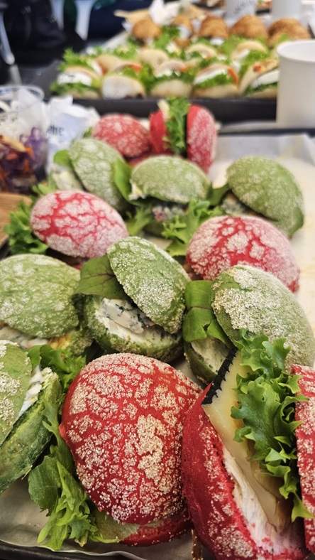 בלחמניות הצבעוניות? בסלט המרענן וממש קורא לי? בפריסקה הקטן והמושלם ? בטורטיות ביס המלאות בכל טוב ? או אולי בפוקאצות הקטנות ? אולי נתחיל בדפי האורז הצבעוניים מלאי הירקות? פשוט בריאות בתוך הצלחת. תשמעו העיניים לא הפסיקו לשוטט על השולחן. ורגע, עוד לא הזכרתי את הקינוחים… העוגות היפייפיות והאלגנטיות, בכל אופן הנס ברטלה הגדול הוא האחראי לכל היופי והטעם והאסתטיות של כל הקינוחים.